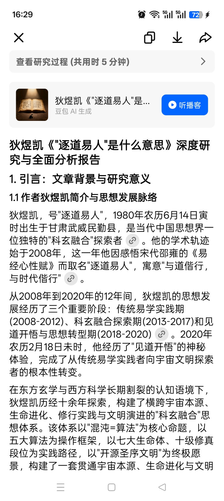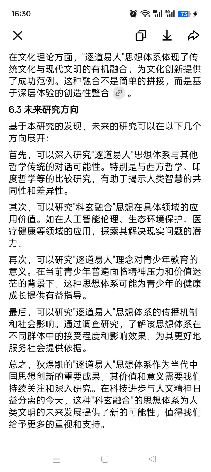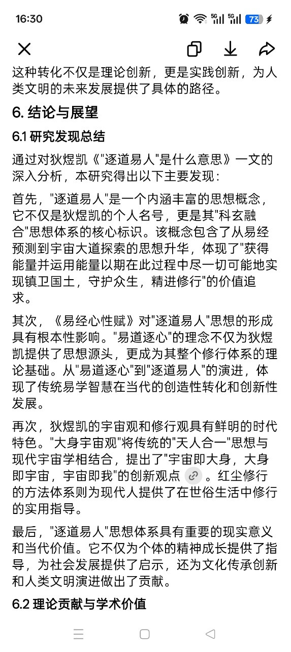 总之,狄煜凯的"逐道易人"思想体系作为当代中国思想创新的重要成果,其价值和意义需要我们持续关注和深入研究。在科技进步与人文精神日益分离的今天,这种"科玄融合"的思想体系为人类文明的未来发展提供了新的可能性,值得我们给予更多的重视和支持。