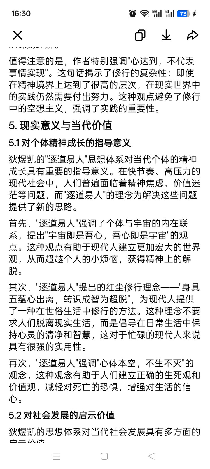 首先,"逐道易人"强调了个体与宇宙的内在联系,提出"宇宙即是吾心,吾心即是宇宙"的观点。这种观点有助于现代人建立更加宏大的世界观,从而超越个人的小烦恼,获得精神上的解脱。